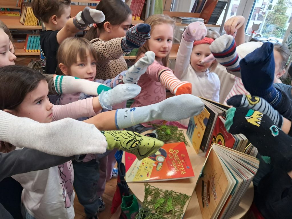 W czwartek, 12.03, w klasie 1a pojawiły się skarpetki, ktore wybrały wolność i pod kierunkiem Pani Bibliotekarki zamieniliśmy je w przytulanki. W bibliotece poznaliśmy kolejne 🧸📚🤗