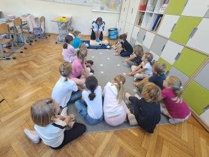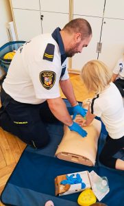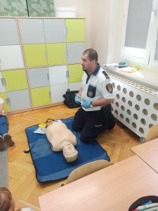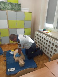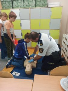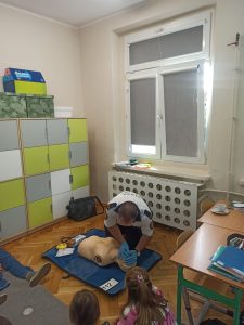W trakcie „Bezpiecznego Tygodnia” organizowane były pogadanki , warsztaty, konkursy, które miały na celu zwiększenie świadomości na temat bezpieczeństwa. Warsztaty z zasad udzielania pierwszej pomocy przeprowadzone były w kl. I-III oraz w przedszkolu przez przedstawiciela Straży Miejskiej, a zarazem ratownika medycznego p. Marcina Marcinkowskiego, który w bardzo profesjonalny sposób m.in. demonstrował dzieciom jak wygląda resuscytacja. Każde dziecko mogło przećwiczyć uciśnięcia klatki piersiowej na fantomie.