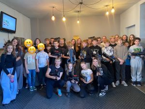 W czwartek klasy 6a i 6b wspólnie z wychowawczyniami wybrały się na wycieczkę z okazji Dnia Chłopaka. Programem dnia była gra w laser tag, która okazała się strzałem w dziesiątkę! Podczas rozgrywek każdy mógł poczuć się jak prawdziwy strateg i wojownik – liczyła się współpraca, szybkość i dobra taktyka. Emocje były ogromne: od głośnych okrzyków radości po śmiech i zdrową rywalizację między drużynami. Wszyscy dali z siebie wszystko, a najważniejsze było to, że każdy świetnie się bawił.