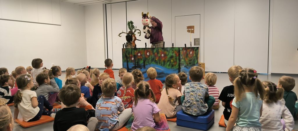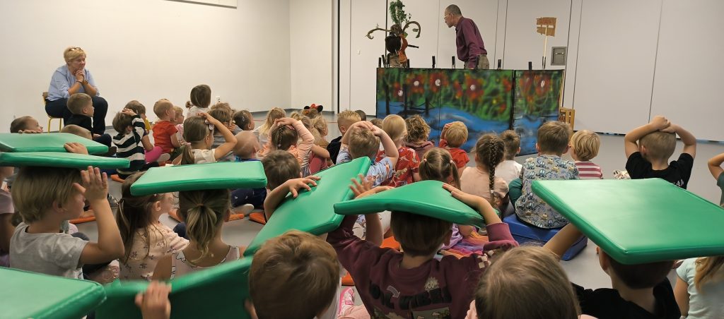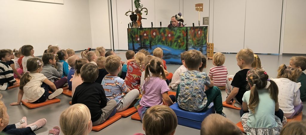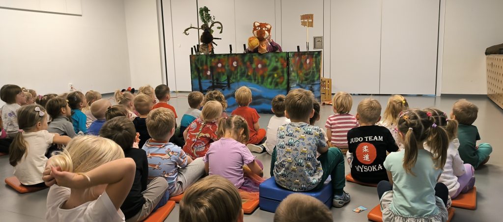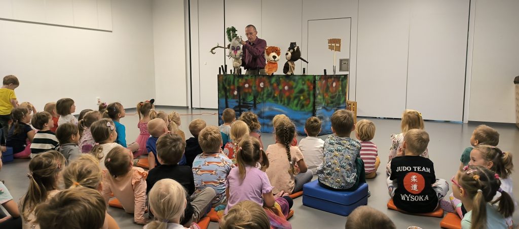 Dnia 09.10.2025 roku przyjechał do przedszkola teatrzyk, teatr jednego aktora z bardzo fajnym przedstawieniem ” Droga do Panamy”. Celem było ukazanie dzieciom, że czasem szuka się po całym świecie szczęścia i spełnienia marzeń, a one są bardzo blisko nas, w naszym domu z najbliższymi nam osobami. Zwierzątka wybrały się do Panamy, by spełnić swoje marzenia i poszukać szczęścia. Inne zwierzątka oszukiwały je i wskazywały złą drogę. Dzięki temu zamiast znaleźć się w Panamie wróciły do swojego domu i stwierdziły, że jednak tu jest im najlepiej. Dzieciom podobało się przedstawienie. Dziękujemy że mogliśmy w nim uczestniczyć.