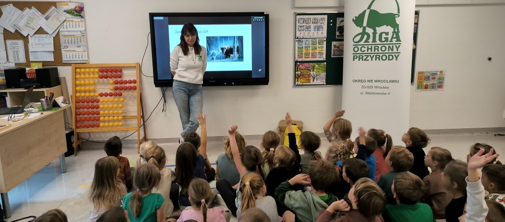 Dnia 10.10.2025 roku mieliśmy w przedszkolu wspaniałego gościa, odwiedziła nas pani z LOP ze wspaniałą prelekcją „Jestem przyjacielem przyrody”. Opowiadała co to jest przyroda, jak ją chronić, dlaczego należy ją chronić. Dlaczego trzeba segregować śmieci. I o wielu innych ważnych kwestiach. Dzieci z wszystkich grup aktywnie uczestniczyły w prelekcji. Następnie oglądały przez szkło powiększające szerszenie i pszczoły. Zajęcia odbyły się we wszystkich grupach przedszkolnych. Dziękujemy bardzo za wspaniałe zajęcia.