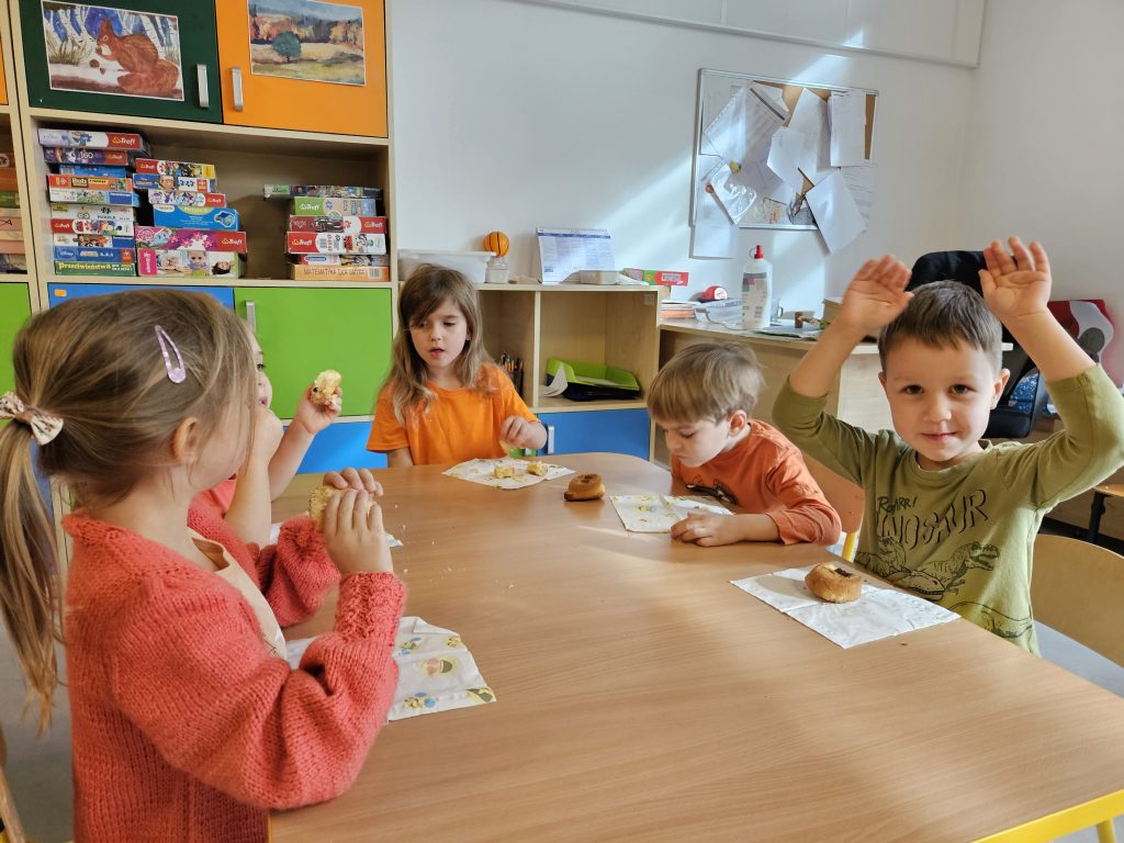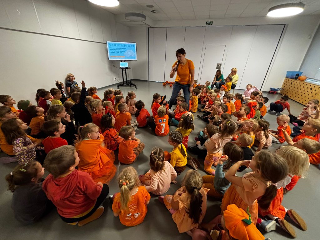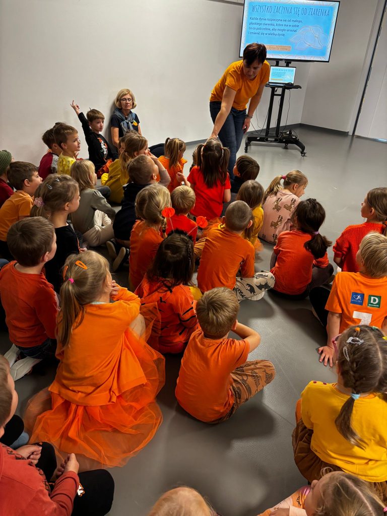 W czwartek w naszym Przedszkolu odbył się Dzień Dyni. Wszystkie grupy zgromadzonych się w sali rytmiczne aby wspólnie bawić się oraz poznać jeszcze więcej ciekawostek nt. dyni. Dzień zakończył się wspaniałym dyniowym podwieczorkiem przygotowanym przez przedszkolną kuchnię.
