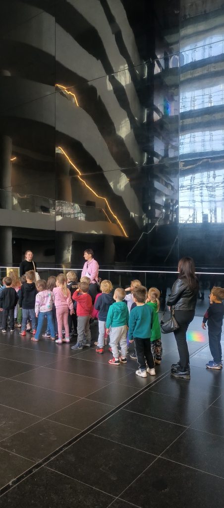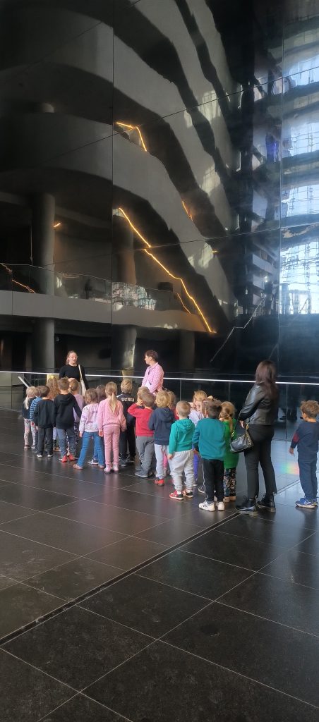 Dnia 04.11.2025 Myszki były na zajęciach edukacyjnych w Narodowym Forum Muzyki. Pani przewodnik opowiadała nam jak powstało Forum Muzyki, dlaczego użyto konkretnych kolorów. Zwiedzaliśmy sale koncertowe, byliśmy na próbie orkiestry i słuchaliśmy gry na fortepianie. To był wspaniały dzień, któremu towarzyszyła piękna pogoda, mogliśmy więc zobaczyć wrocławską złotą jesień.