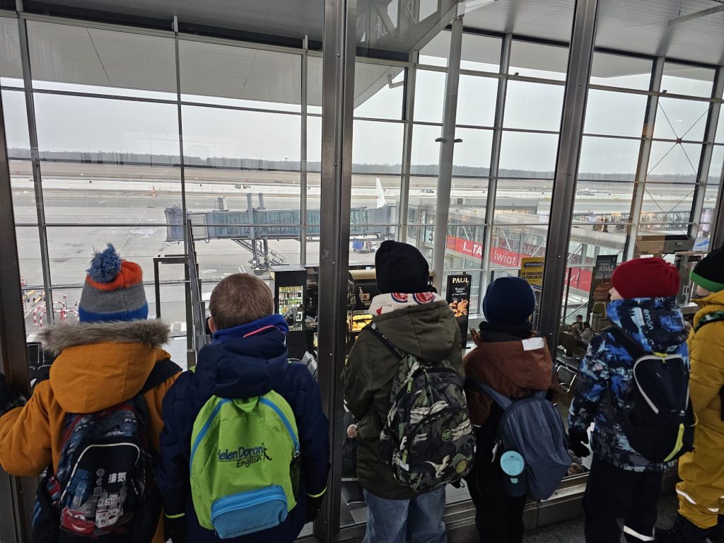 Pierwszy dzień ferii spędziliśmy bardzo aktywnie i ciekawie. Odwiedziliśmy lotnisko, gdzie dzieci dowiedziały się, jakich przedmiotów nie wolno przewozić w bagażu, poznały rolę Sokolnika oraz Marshallera, a także obserwowały odloty samolotów i proces sprawdzania bagażów.