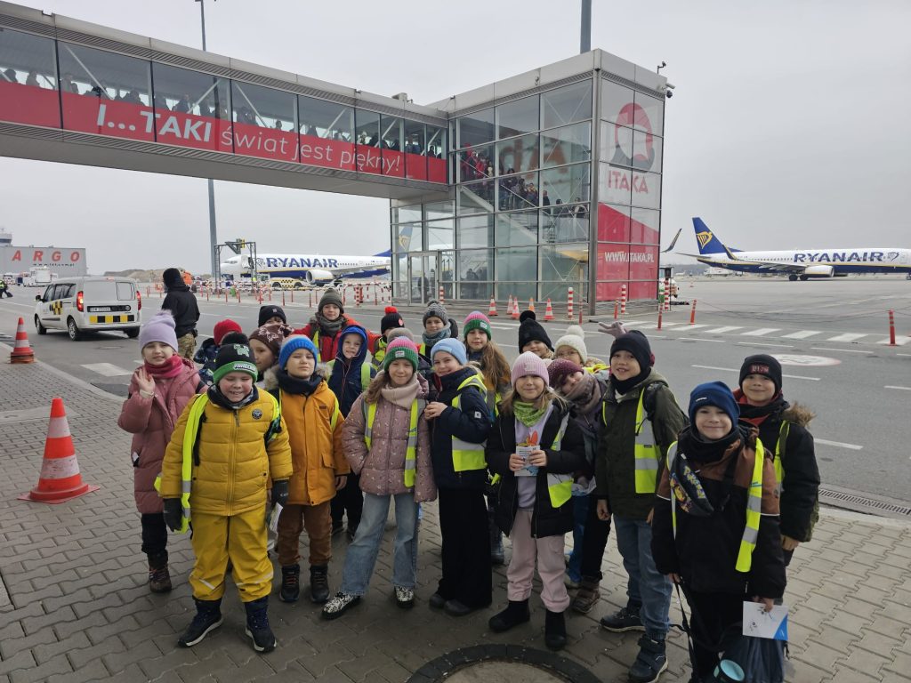 Pierwszy dzień ferii spędziliśmy bardzo aktywnie i ciekawie. Odwiedziliśmy lotnisko, gdzie dzieci dowiedziały się, jakich przedmiotów nie wolno przewozić w bagażu, poznały rolę Sokolnika oraz Marshallera, a także obserwowały odloty samolotów i proces sprawdzania bagażów.