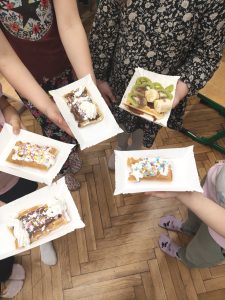 6 marca w klasie 1 b świętowaliśmy Dzień Kobiet, ponieważ w tym roku 8 marca przypadał w niedzielę. Uczniowie oglądali bajkę oraz zjedli pyszne gofry, które udekorowali swoimi ulubionymi dodatkami. Cały dzień upłynął w miłej i radosnej atmosferze.
