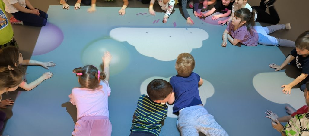Zabawy z dziećmi na dywanie interaktywnym (Magicznym Dywanie) w przedszkolu to nowoczesna forma aktywności łącząca ruch z edukacją. Wirtualne gry rozwijają motorykę dużą, koordynację wzrokowo-ruchową, spostrzegawczość, refleks i koncentrację. Przedszkolaki angażują się, używając rąk i nóg do interakcji z wyświetlanymi na podłodze grami, co wspiera ich rozwój poznawczy i społeczny. Uwielbiają zabawy na interaktywnej podłodze.