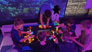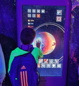 Jednym z najbardziej zaskakujących doświadczeń było poznanie… zapachu kosmosu! Uczniowie mogli również wysłać swój głos w kosmos, co wzbudziło wiele emocji i radości. Dużym zainteresowaniem cieszyła się także projekcja w małym planetarium, gdzie mogliśmy podziwiać gwiazdy i planety.
